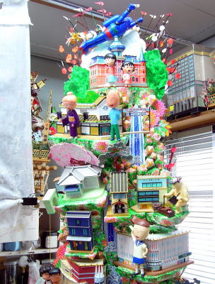 中、昔の萬盛堂、舁き山流れ止めゲート
